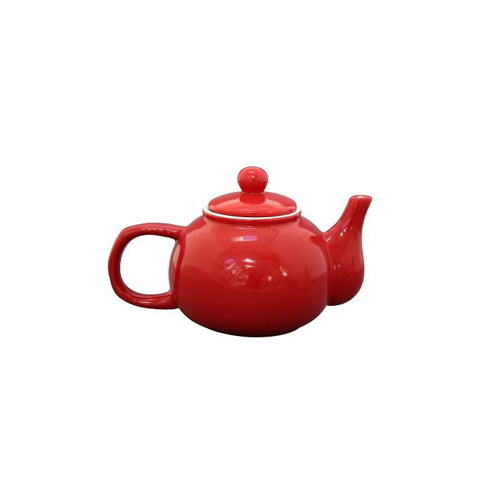 Dzbanek wykonany jest z ceramiki i ma czerwony kolor.