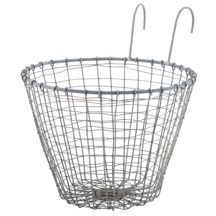 Kosz wykonany jest z metalu i przeznaczony na wyeksponowanie na balkonie doniczki z kwiatami.