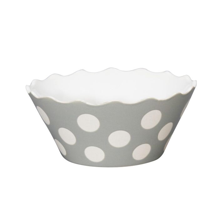 Oryginalne wykonanie, pomysłowy design oraz zabawne kropy dodają jej ogromnego uroku. Dzięki delikatnym odcieniom szarości miska wpasuje się w każde wnętrze i będzie cieszyć oko podczas domowych lub ogrodowych przyjęć.