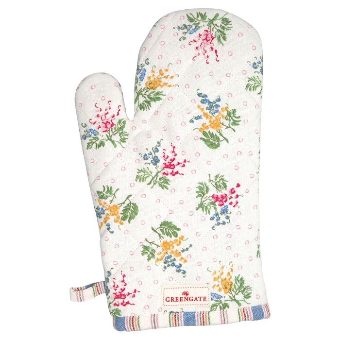 Bawełniana rękawica kuchenna Mira White to przepiękna pomoc kuchenna, zaprojektowana przez renomowaną, duńską markę Green Gate.