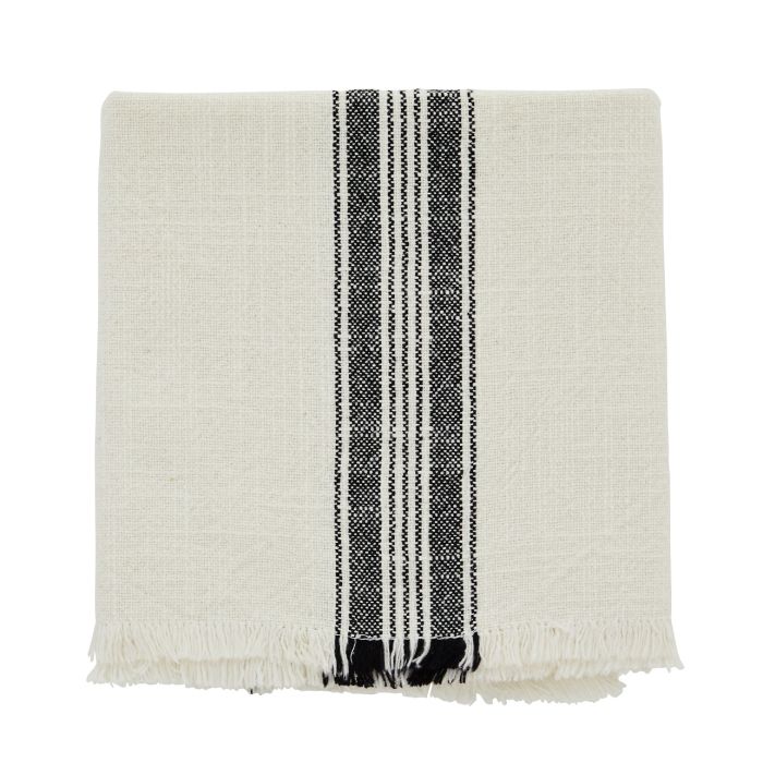 Ściereczka utkana została z miękkiej bawełny z delikatnym wzorem w postaci czarnego paska.
