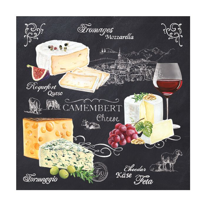 Serwetki wykonane są z 3-warstowego papieru zdobionego motywem różnych serów.