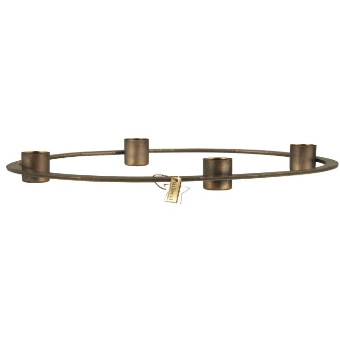 Świecznik adwentowy wykonany z metalu w kolorze matowego mosiądzu.