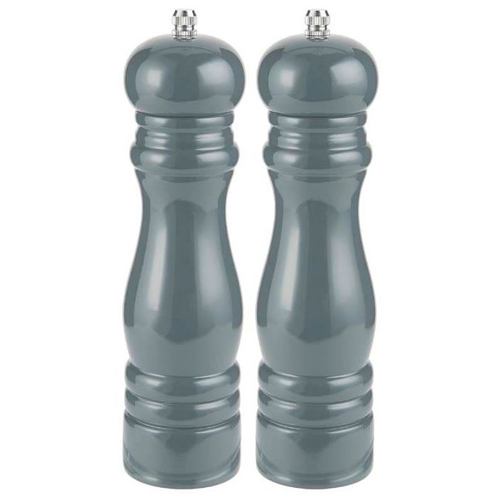 Młynki wykonane są z lekkiego drewna w kolorze ciemnoszarym z połyskiem.