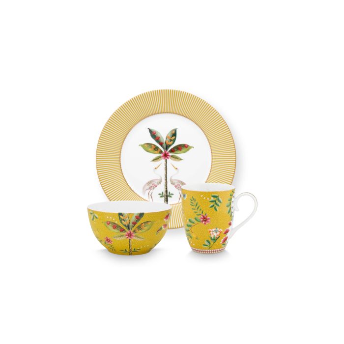 Uroczy zestaw śniadaniowy z kolekcji La Majorelle Yellow, renomowanej marki PiP Studio.