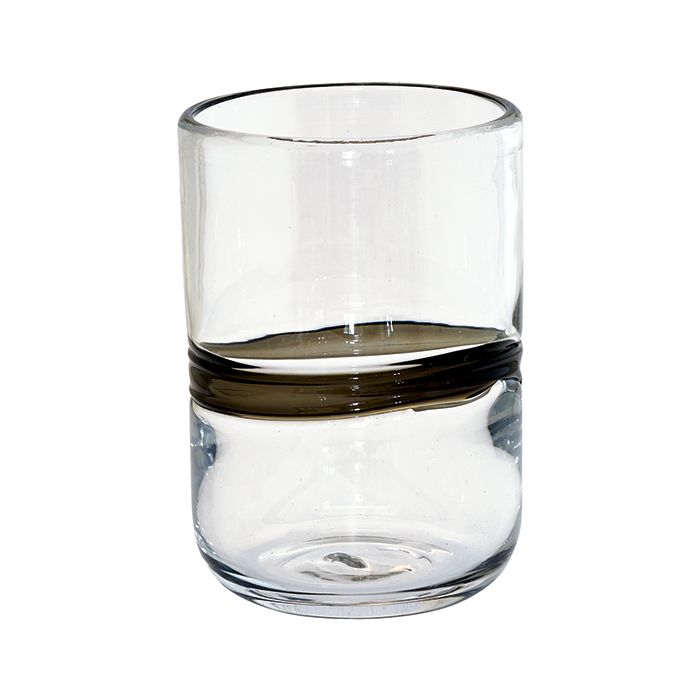 Szklanki wykonane są z solidnego szkła i zdobione czarnym pasem o nieregularnym kształcie.